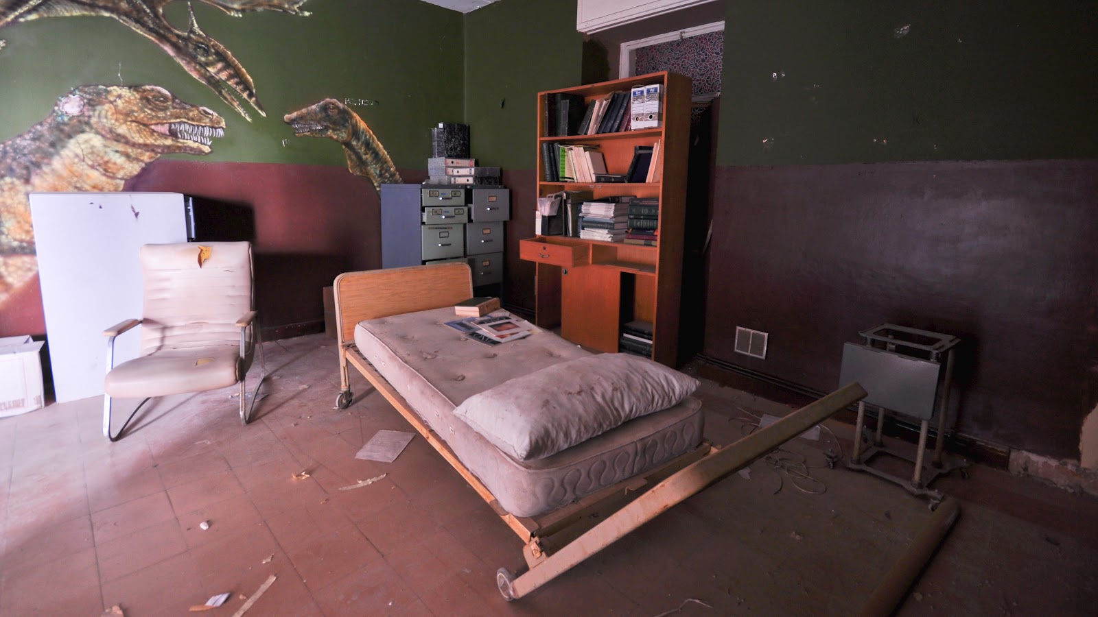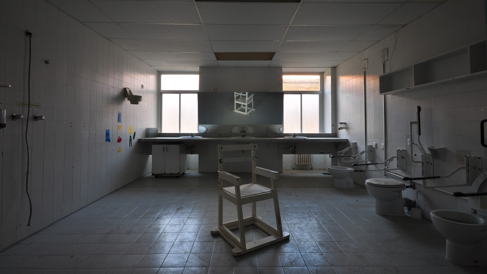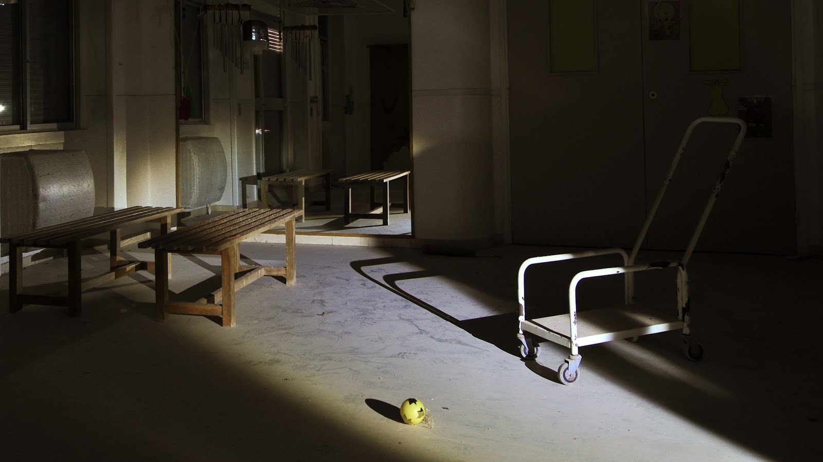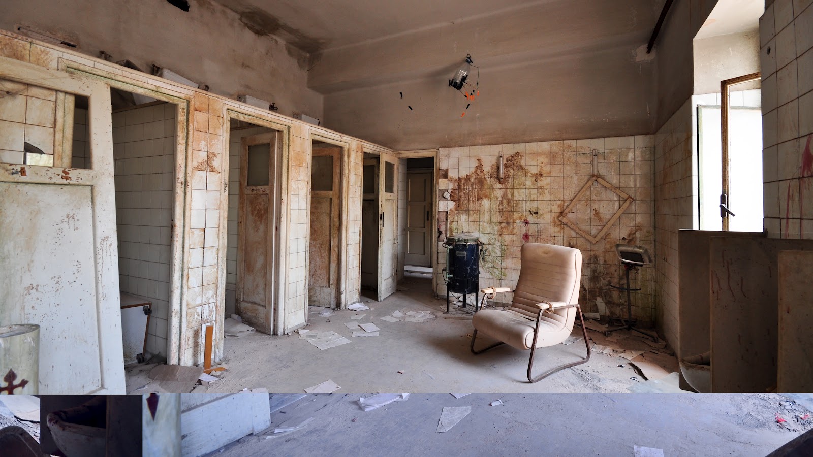 Con la cautela de no despertar antiguos fantasmas y leyendas que viven dentro de nuestro subconsciente, nos dirigimos a una de las plantas que aun siguen intactas desde su abandono, adornadas unicamente por parte del atretzzo que suelen usar los estudiantes de cine o directores que ruedan sus cortometrajes y peliculas en el hospital.