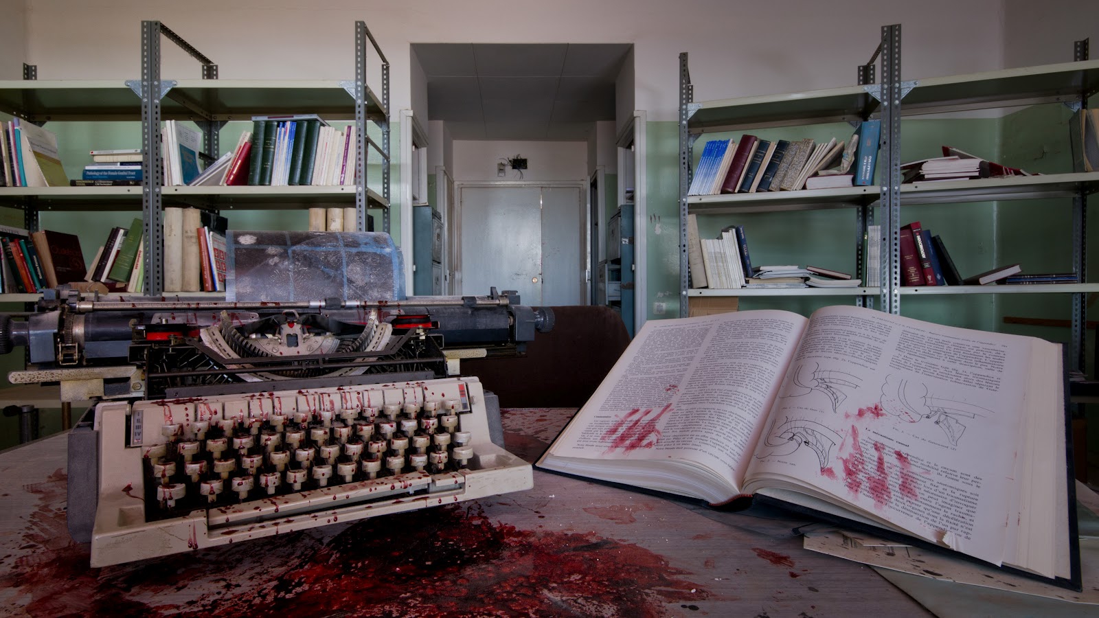 FIN Atención: Toda la sangre que podéis observar en este reportaje no es real, se trata de efectos especiales que han sido usados para producciones de cortometrajes y films de la productora que regenta actualmente este hospital, convertido ahora en estudios filmograficos. Advertimos por si pudiera herir la sensibilidad de algunas personas, estando excentos de toda responsabilidad.
